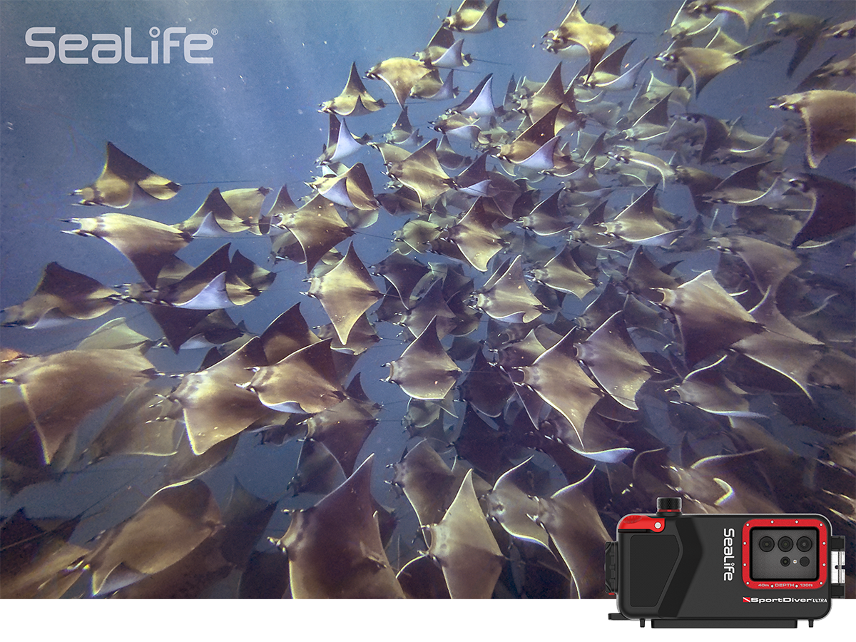 Swimming with a large group of Mobula Rays won’t immediately create a great image. Make sure that the rays are in formation going in the same direction to capture this wonderful underwater moment.